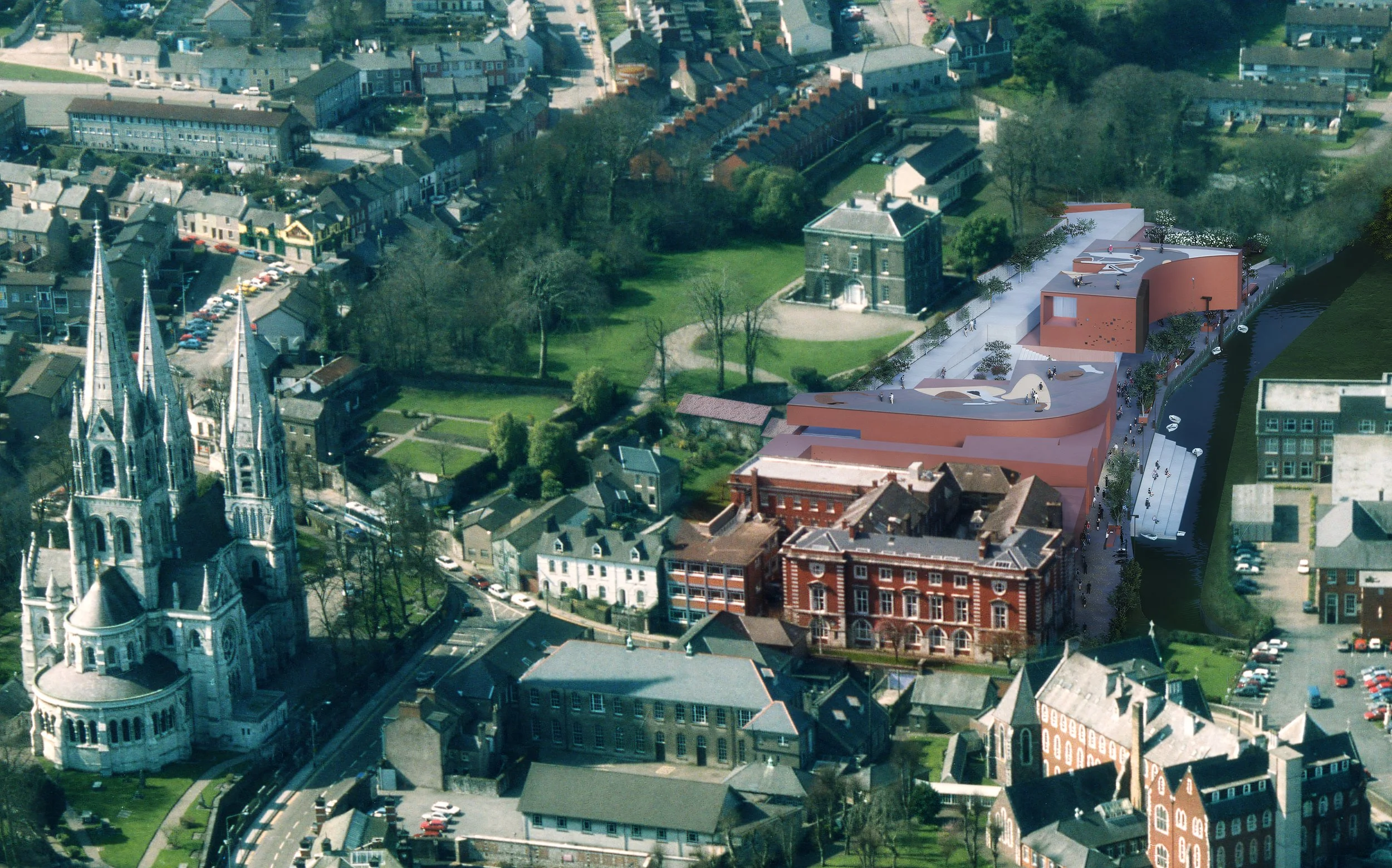 Our vision for the Bishop’s Garden site is to form an expanded idea of urban space. It is a type of soft-urbanism – what Sorkin might refer to as “loose fit” space - where the site is configured as a series of evolving liminal fields that mediate and connect art-based learning activities and changing temporal environments. What it produces is a new material aesthetic between architecture and nature – spaces and species that reflexively develop across multiple scales and construct the site as a living sensorium. The physical and visual references for this proposal relate to distinct characteristics of the site and wider urban and artistic influences. On one hand, the predominant material reddened ochre-colour palette adopted for the proposal relates to the coloration and tone of the brick used on the existing MTU College of Art & Design building on Sharman Crawford Street.